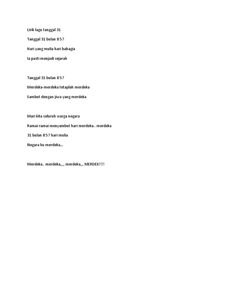 Lirik Lagu Tanggal 31 Ogos Pdf